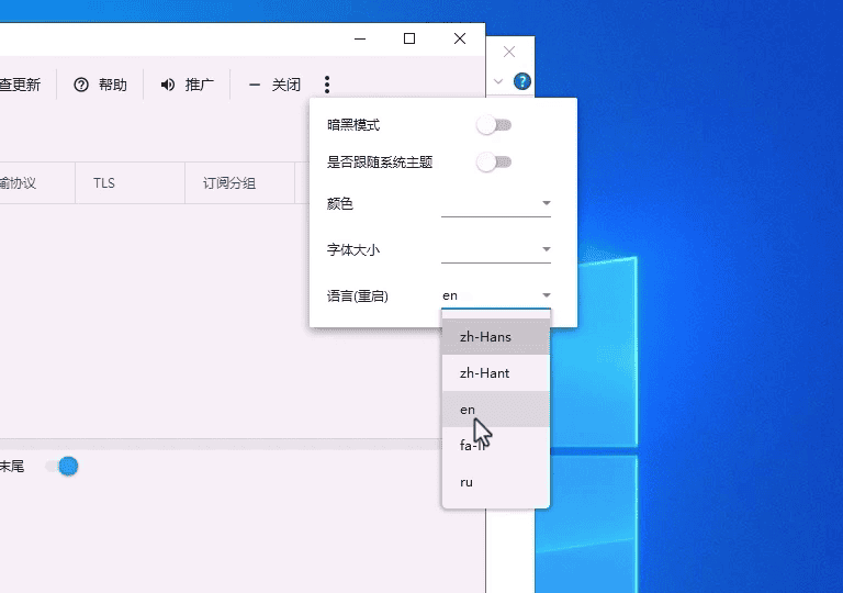 اگر برنامه با زبان چینی باز شد، طبق تصویر در تنظیمات برنامه گزینه "en" را انتخاب کنید. در صورت تمایل برای تغییر زبان برنامه به فارسی می توانید گزینه "fa-Ir" را انتخاب کنید.